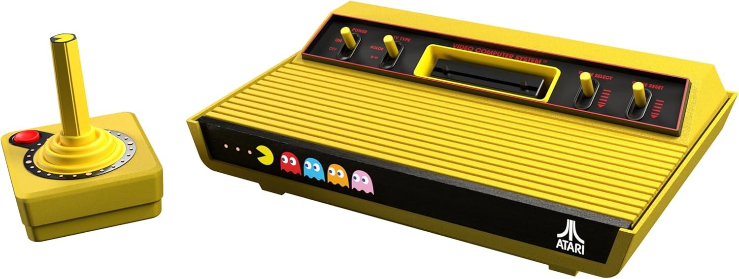 Uma nova versão da icónica consola em amarelo PAC-MAN apresenta ícones de personagens iluminados na frente. Jogue jogos retro como se lembra, num sistema atualizado para hoje, com saída HDMI e compatibilidade com versões anteriores e diretas. Inclui os novos cartuchos PAC-MAN: Double Feature 2 em 1 e uma edição PAC-MAN do joystick sem fios Atari CX-40+. A coleção Atari x PAC-MAN celebra a longa história de colaboração entre a Atari e o criador da PAC-MAN, Bandai Namco, homenageando o lançamento original no Atari 2600, com joysticks fantasmas coloridos, consola amarela Atari 2600, novo jogo PAC-MAN e mais.