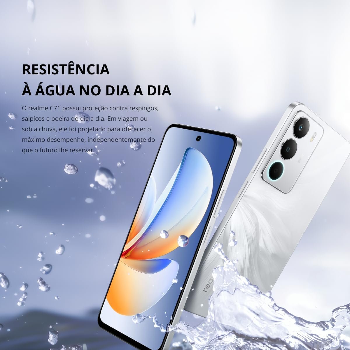 Realme C71 NFC 4G possui processador Unisoc T7250 Octa-Core, 4GB RAM e 256GB de armazenamento expansível via microSD. Tela IPS LCD de 6,67″ com 120 Hz e brilho de até 725 nits. Câmera traseira de 50MP, f/1.8, com estabilização digital, autofoco, foco por toque, flash LED, HDR, localização e detecção facial. Câmera frontal de 5MP, f/2.2. Bateria de 6000mAh com carregamento rápido 45W SUPERVOOC (0–50% em até 36 min). Conectividade inclui NFC, 4G, Wi-Fi 5, Bluetooth 5.2, GPS e entrada P2 3,5mm. Proteção IP54/IP64, corpo reforçado e função SonicWave Water Ejection.