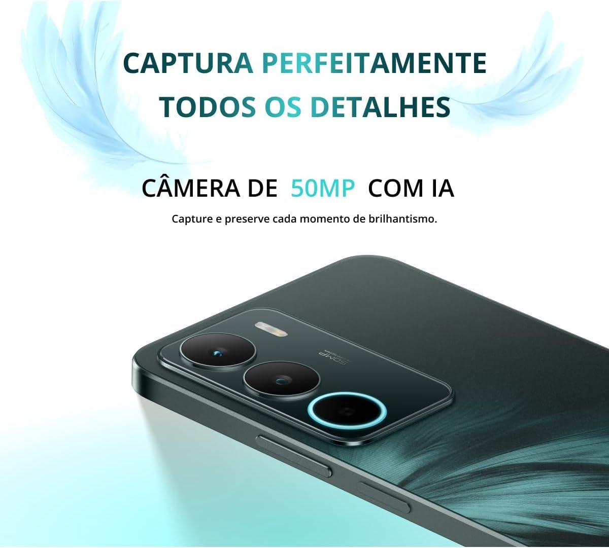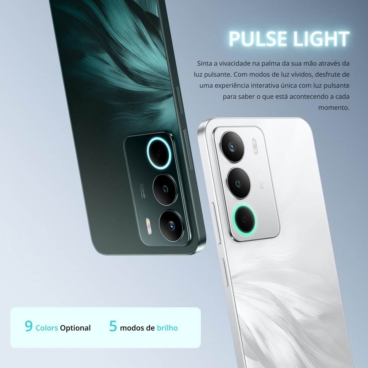 - Câmeras: traseira principal de 50MP (f/1.8) com estabilização digital, autofoco, foco por toque, flash LED, HDR, localização, detecção facial; frontal de 5MP (f/2.2)