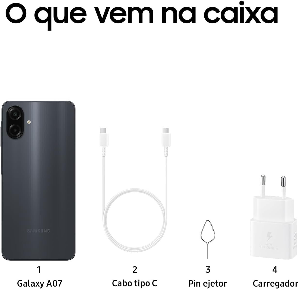 Celular Samsung Galaxy A07 128GB, 4GB, Câm. 50MP, Tela 6.7″- Preto