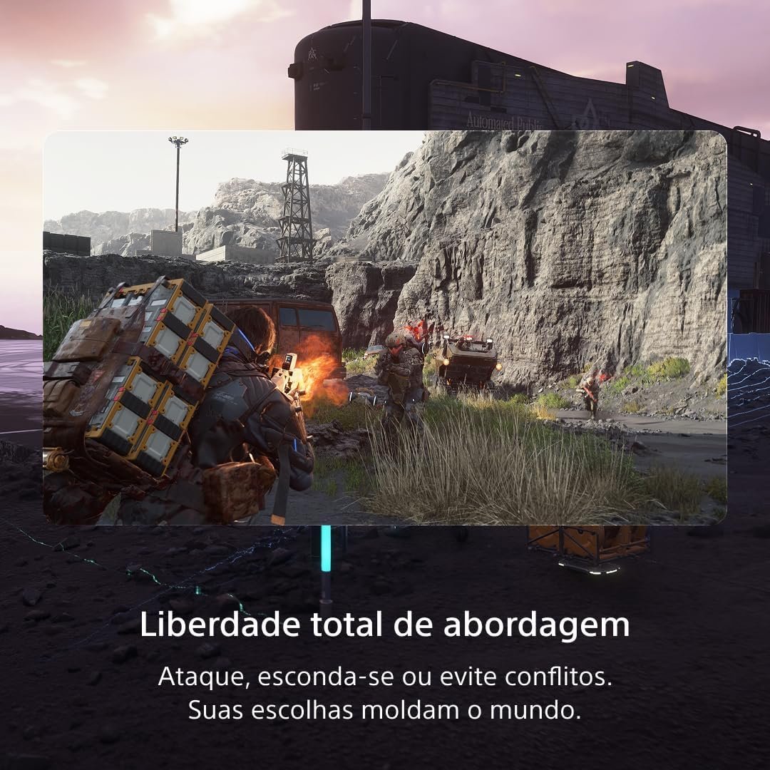As grandes regiões de mundo aberto de Death Stranding 2: On the Beach estão cheias de segredos para você descobrir. Elas são variadas e apresentam desafios únicos de travessia e exploração. Enfrentando inimigos humanos ou entidades de outro mundo, você pode atacar, se esgueirar ou evitar o perigo. Logo após os eventos de Death Stranding, acompanhe Sam em uma nova jornada. Suas ações podem afetar a interação com outros jogadores no mundo do jogo. Deixe sua marca.