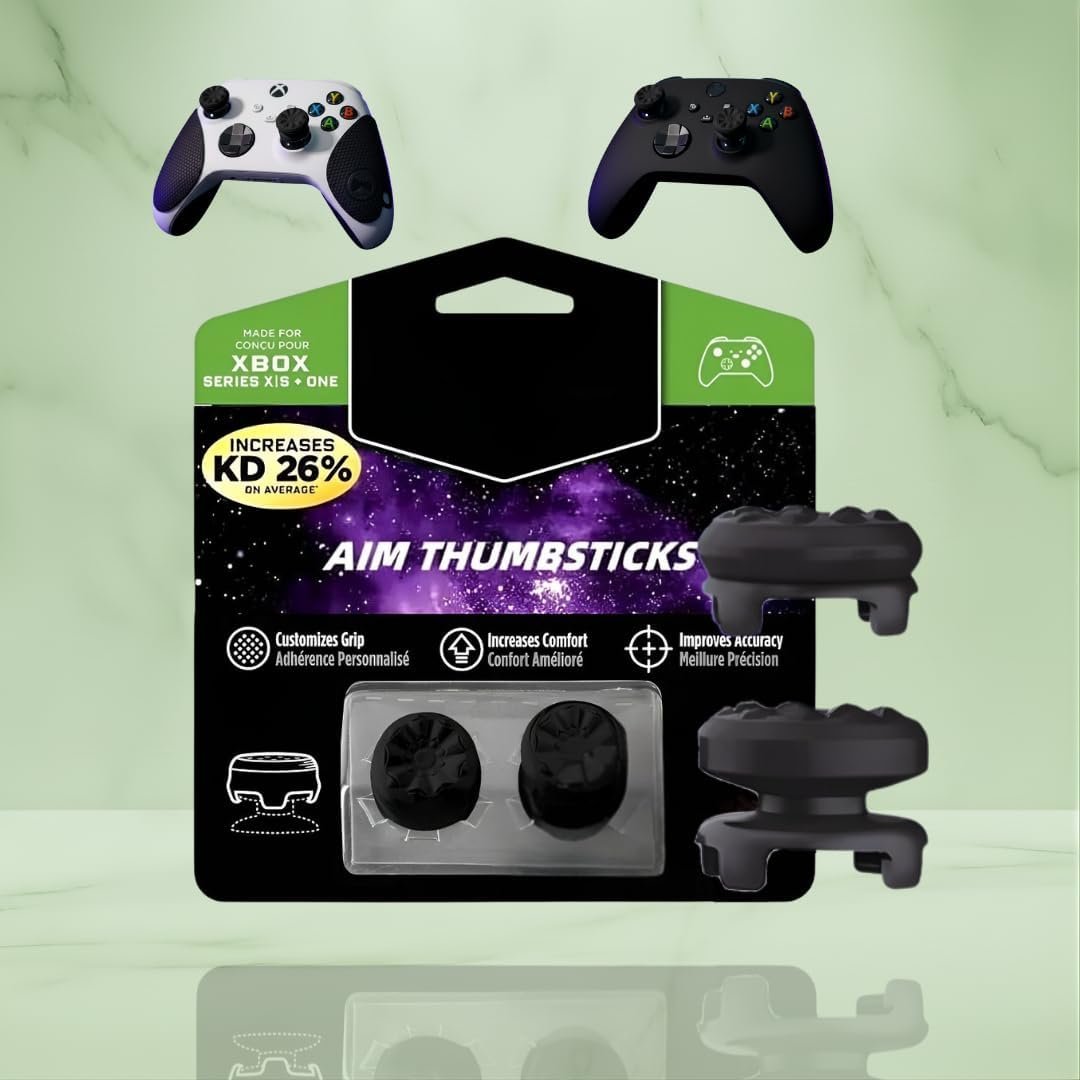 Conjunto de grips para controles Xbox One, Series S e Series X, feitos em silicone macio, borracha premium e ABS resistente. Possuem design com grip elevado para melhor controle direcional e mira. Superfície emborrachada texturizada que reduz escorregões e cansaço dos dedos. Fácil instalação e remoção, encaixando-se nos analógicos sem ferramentas. Protegem os analógicos contra poeira, suor e abrasão, aumentando a durabilidade do controle. Proporcionam toque suave, firmeza e precisão durante o uso contínuo, sem danificar o controle. Indicado para jogos de tiro, corrida, ação e competitivos.