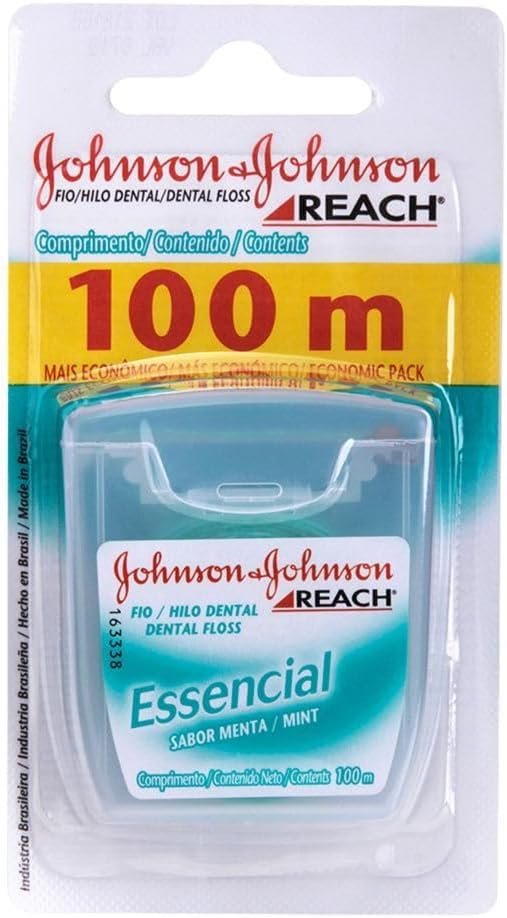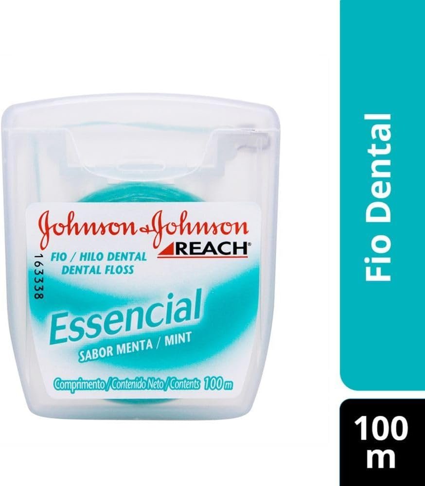 O REACH® Essencial Menta é um fio dental com sabor de menta, indicado para uso adulto, que auxilia na remoção da placa bacteriana. Disponível em embalagem econômica de 100 metros, seu uso envolve deslizar o fio entre os dentes para limpeza. Fabricado pela Johnson & Johnson no Brasil, o produto é recomendado para complementar a higiene bucal, junto com escovas e outros cuidados indicados por dentistas.