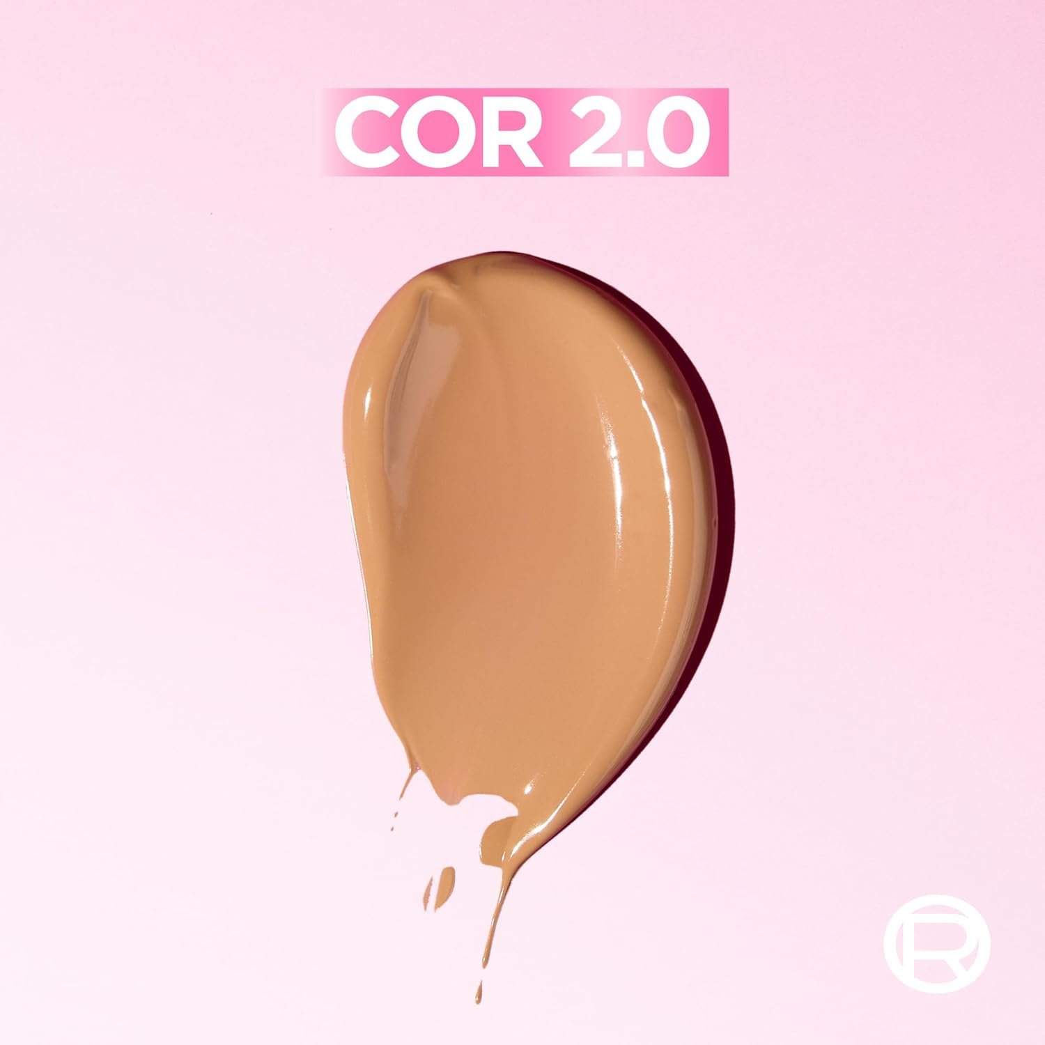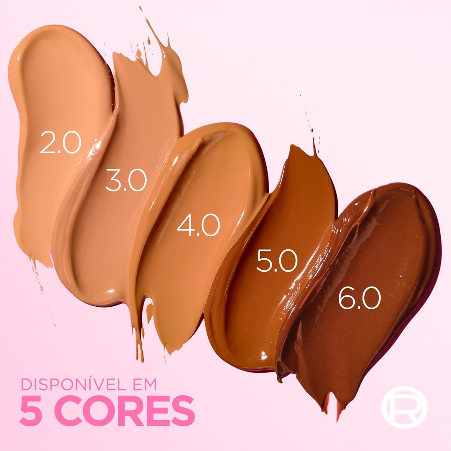 Cobertura: Maquiagem com efeito base, alta cobertura, até 12 horas