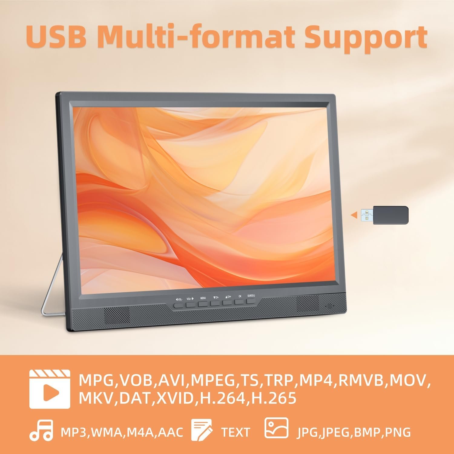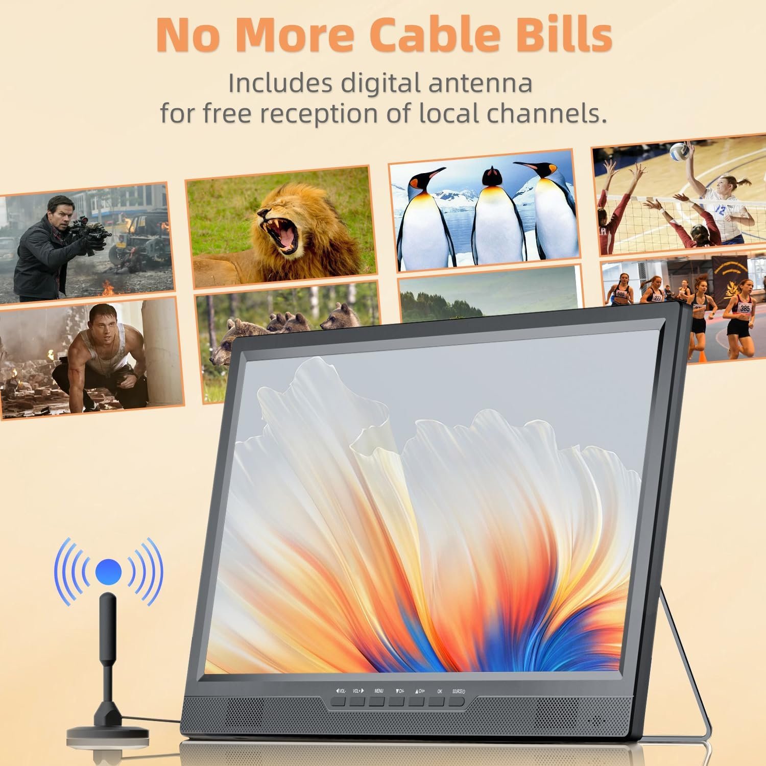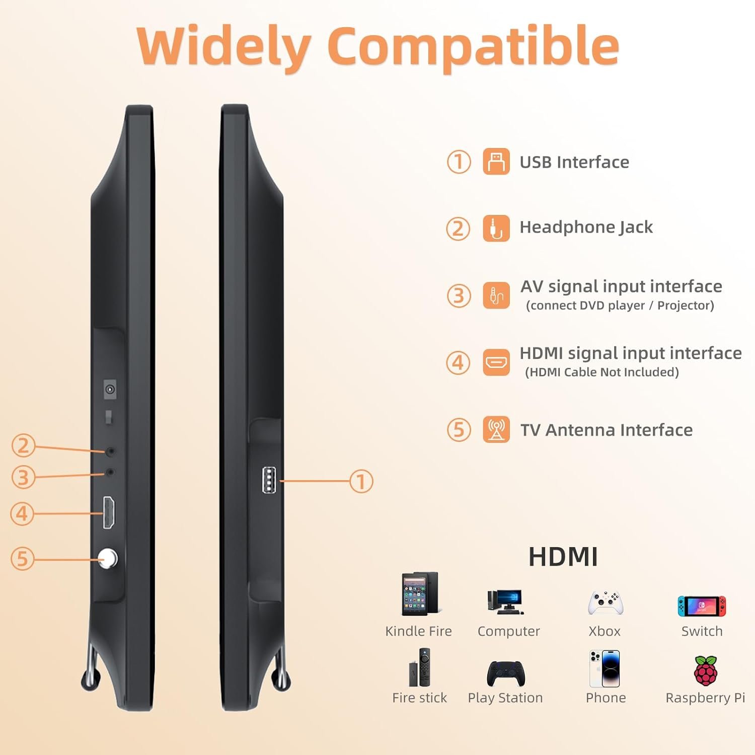 NORTHING TV portátil de 19,2 polegadas com antena, TV pequena LED 1080p com entrada HDMI/entrada AV/porta USB, monitor portátil com suporte embutido, para acampamento, cozinha, quarto, pátio, trailer