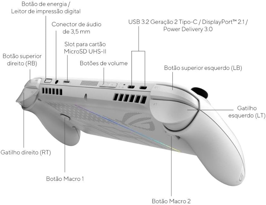 ROG Xbox Ally Console Portátil Tela 7″ Touchscreen 120Hz, AMD Ryzen Z2A 2 GHz, 16 GB RAM, 512 GB SSD, Windows 11 Home – White – RC73YA-NH003W