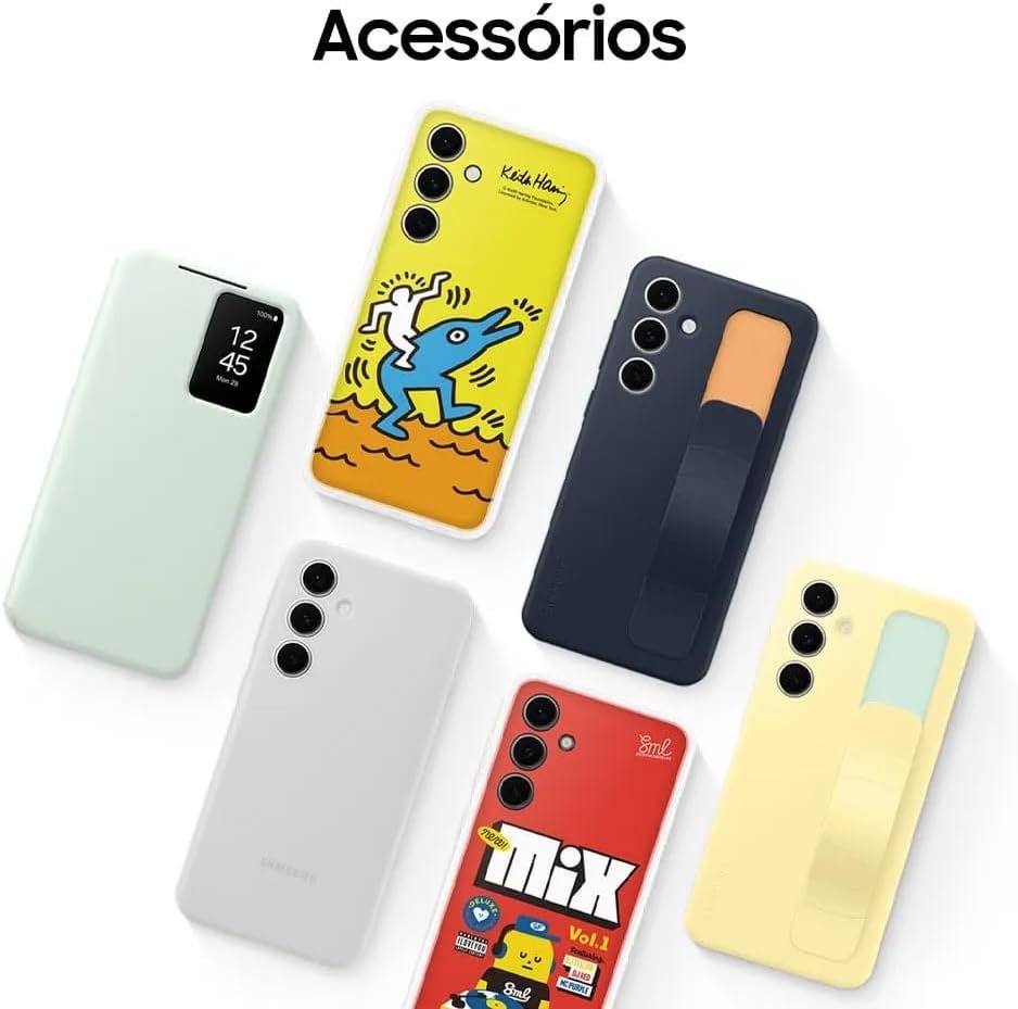 Galaxy S24 FE: Processador Samsung Exynos 2400e (Deca-Core), 8GB RAM, 128GB memória interna. Tela Dynamic AMOLED FHD+ de 6,7” com brilho de 1900 nits e taxa de atualização de 60-120Hz. Câmera tripla traseira de 50MP + 12MP + 8MP e câmera frontal de 10MP. Bateria de 4700mAh. Proteção IP68 contra água e poeira, acabamento em alumínio reforçado e vidro Corning Gorilla Victus. Dual Chip com eSIM. Suporte a Galaxy AI e Cadeado Galaxy para segurança. Recebe 7 atualizações do sistema Android e 7 anos de atualizações de segurança. Aplicativo Smart Switch para transferência de dados.