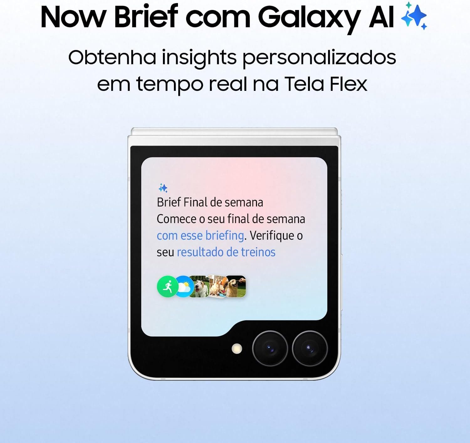 Tela Infinita de 6,7" () AMOLED Dinâmico 2x (interno) e 3,4" () Super AMOLED (externo). Câmera dupla traseira de 50MP (Dual Pixel, OIS) + 12MP (Ultra Wide). Câmera frontal de 10MP.