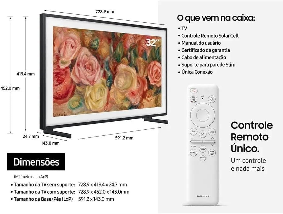 Samsung Combo Smart TV 32” QLED The Frame 32LS03C + Moldura para Smart TV 32 polegadas The Frame 2023 cor branco