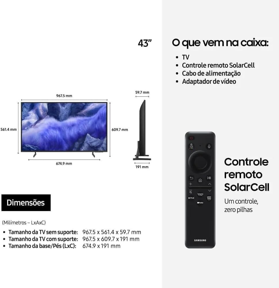 Modelos disponíveis: Samsung Vision AI TV 75″ QLED Ultra 4K QEF1 e Samsung Vision AI TV 43″ QLED Ultra 4K QEF1.