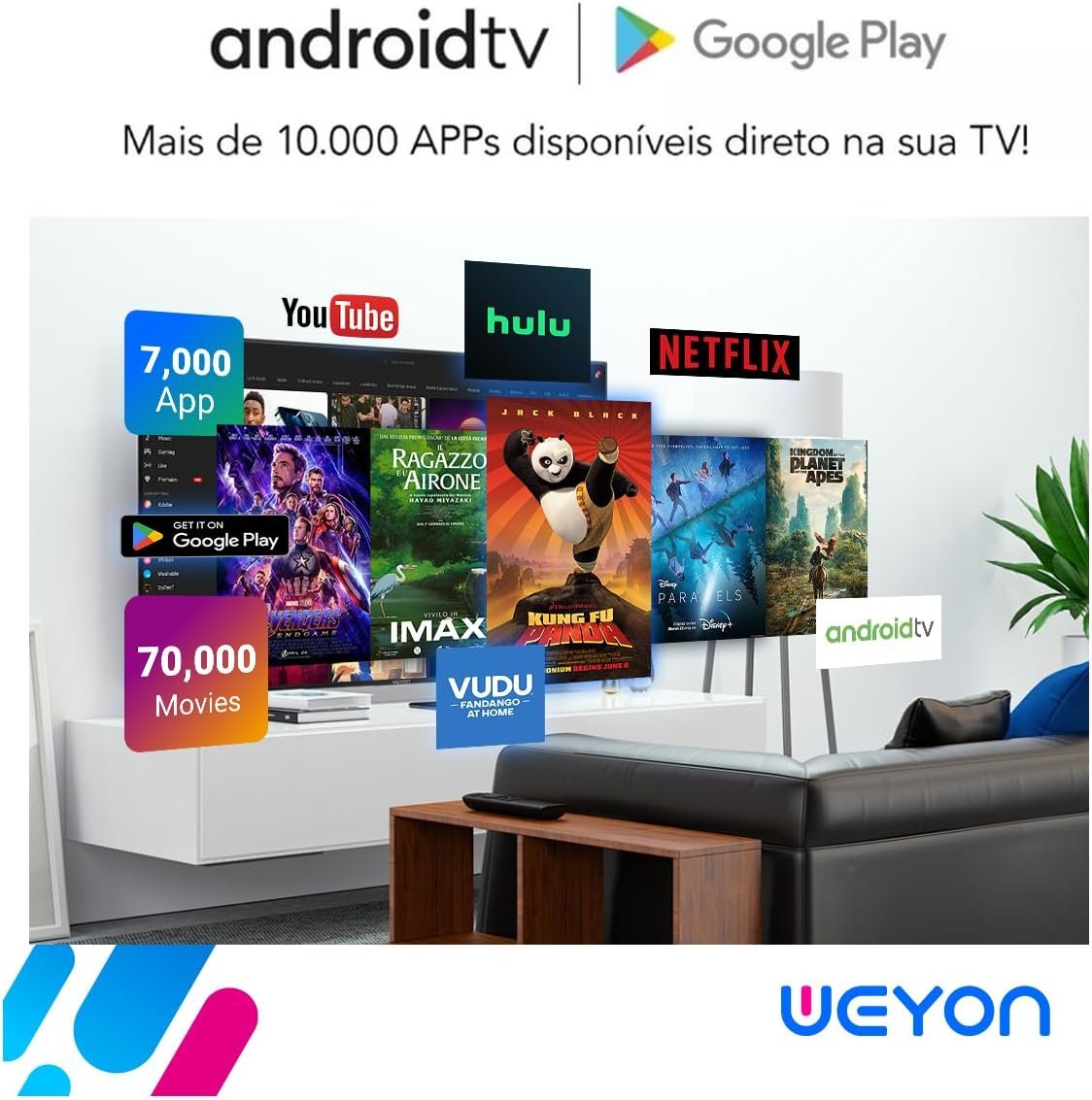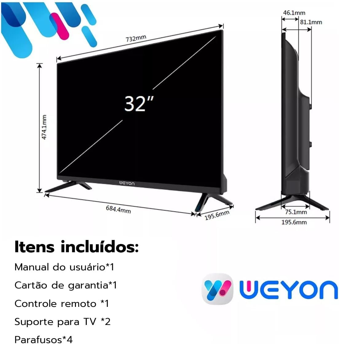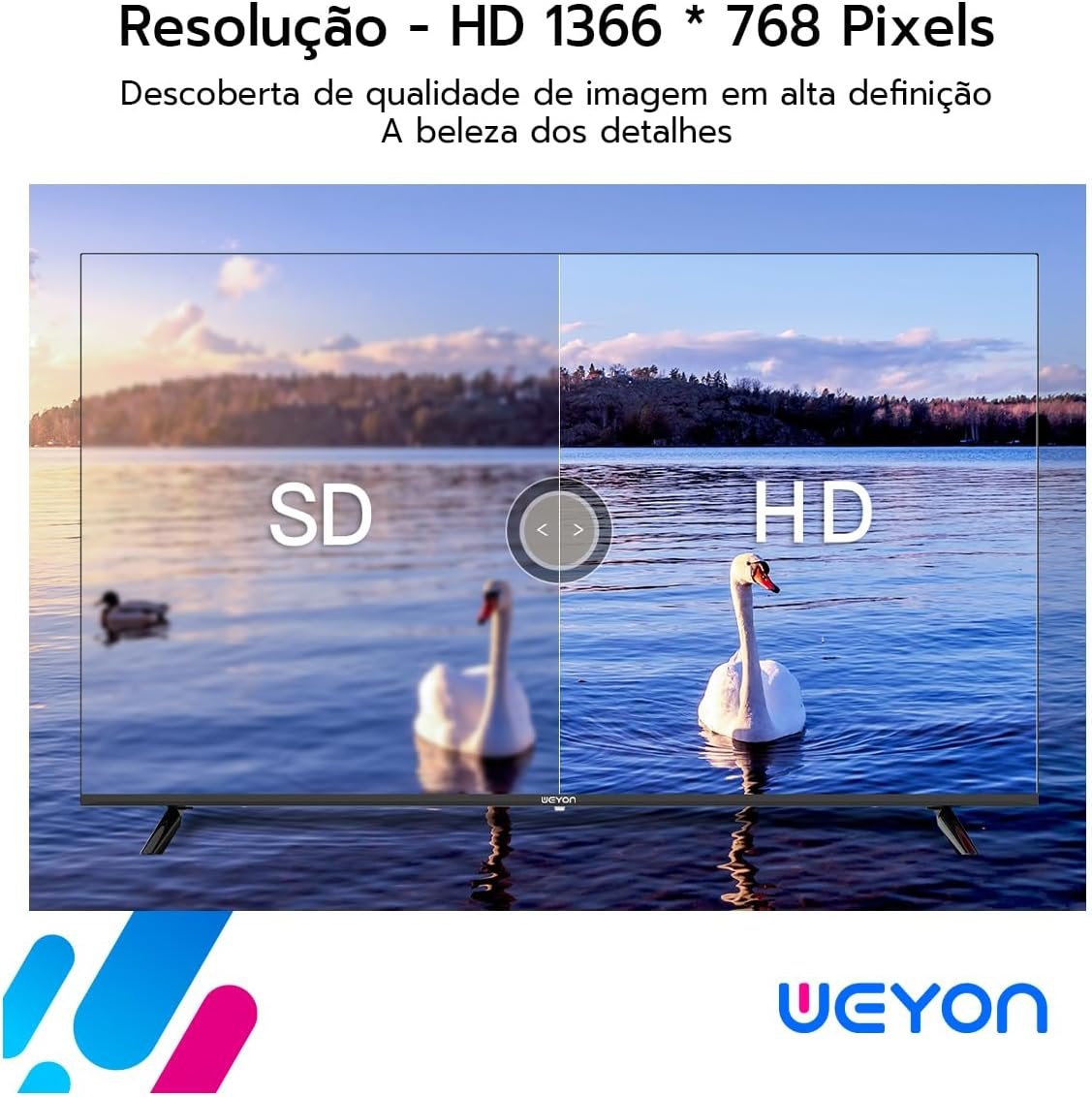 Resolução HD: a tela de 32 polegadas em alta definição oferece imagens nítidas e cores vibrantes, com detalhes aprimorados que proporcionam uma experiência visual superior, tudo com eficiência energética. Smart TV WEYON com Android 14: acesso rápido e fácil a centenas de aplicativos, garantindo entretenimento inteligente e desempenho otimizado.