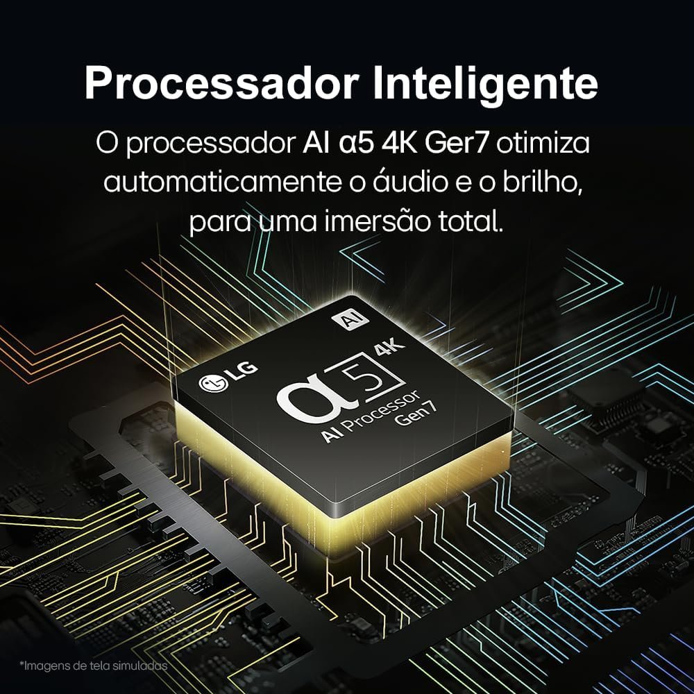 Smart TV LG 55″ 4K QNED, modelo 55QNED80TSA, com processador a5 Ger7 AI, Alexa e Chromecast integrados, além do sistema webOS 24. Possui LG ThinQ AI, Amazon Alexa integrado e reconhecimento de voz inteligente.