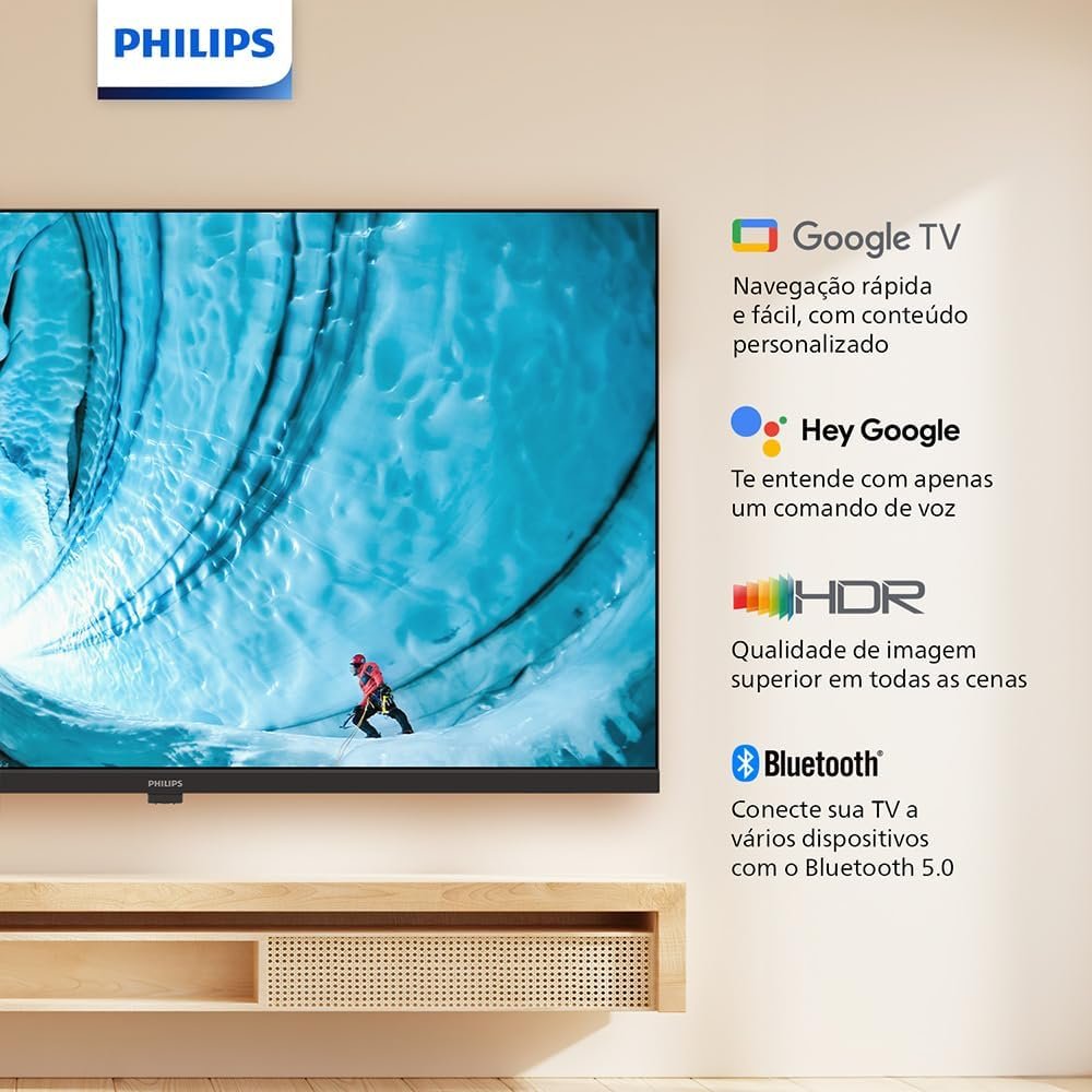A Smart TV Philips HD 32″ 32PHG6909/78 combina tecnologia avançada e design moderno para oferecer entretenimento inteligente. Com Google TV, organiza filmes, séries e apps como Netflix, Disney+ e YouTube em um só lugar, com recomendações personalizadas. O controle por voz é feito via Google Assistente integrado, e o Chromecast built-in permite espelhar conteúdo do celular, fotos e jogos na TV.