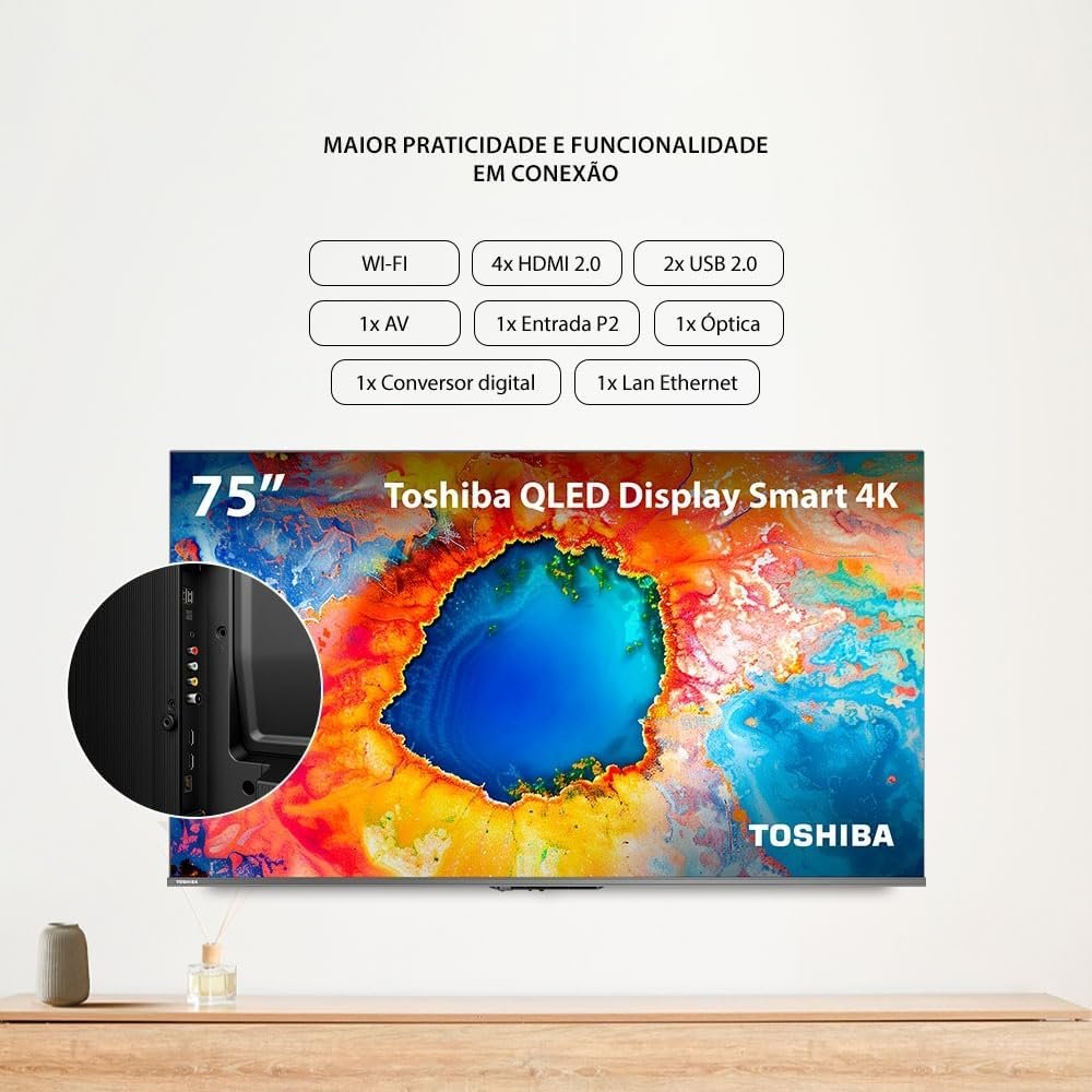 Smart TV QLED 75″ Toshiba 75C450NS 4K Google TV 3 HDMI 2 USB Wi-Fi