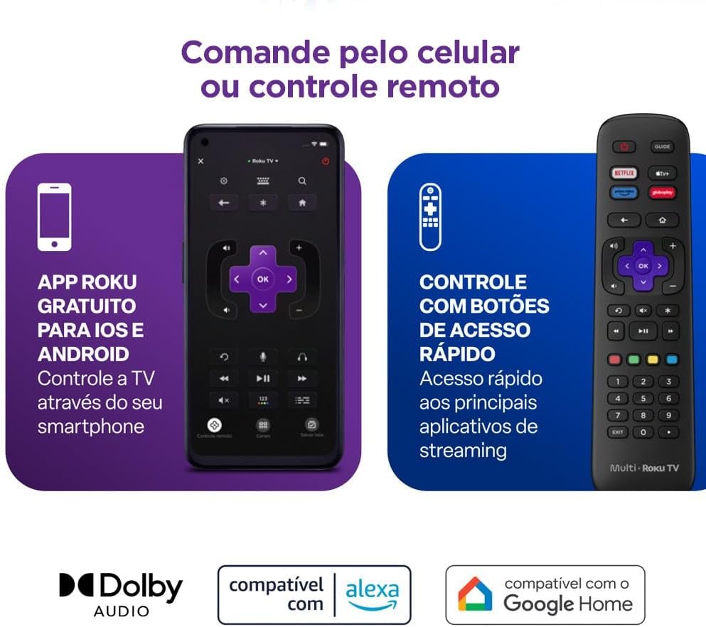 Smart TV 50″ Roku 4K Compatível com Alexa e Google Home TL059M