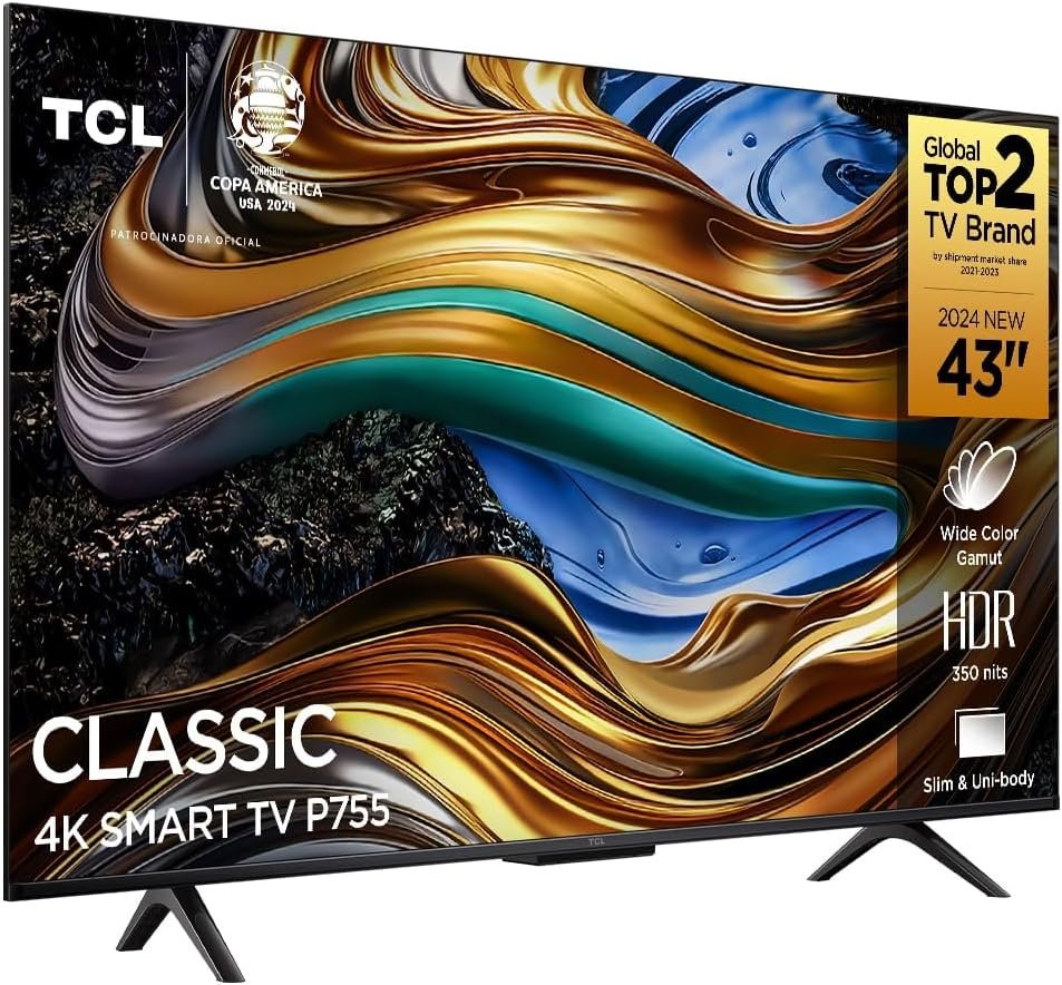 TCL LED SMART TV 43” P755 4K UHD GOOGLE TV com Wi-Fi Dual Band e Bluetooth integrados, Google Assistente, Dolby Vision, Dolby Atmos, HDMI 2.1, HDR10+ e design sem bordas.
