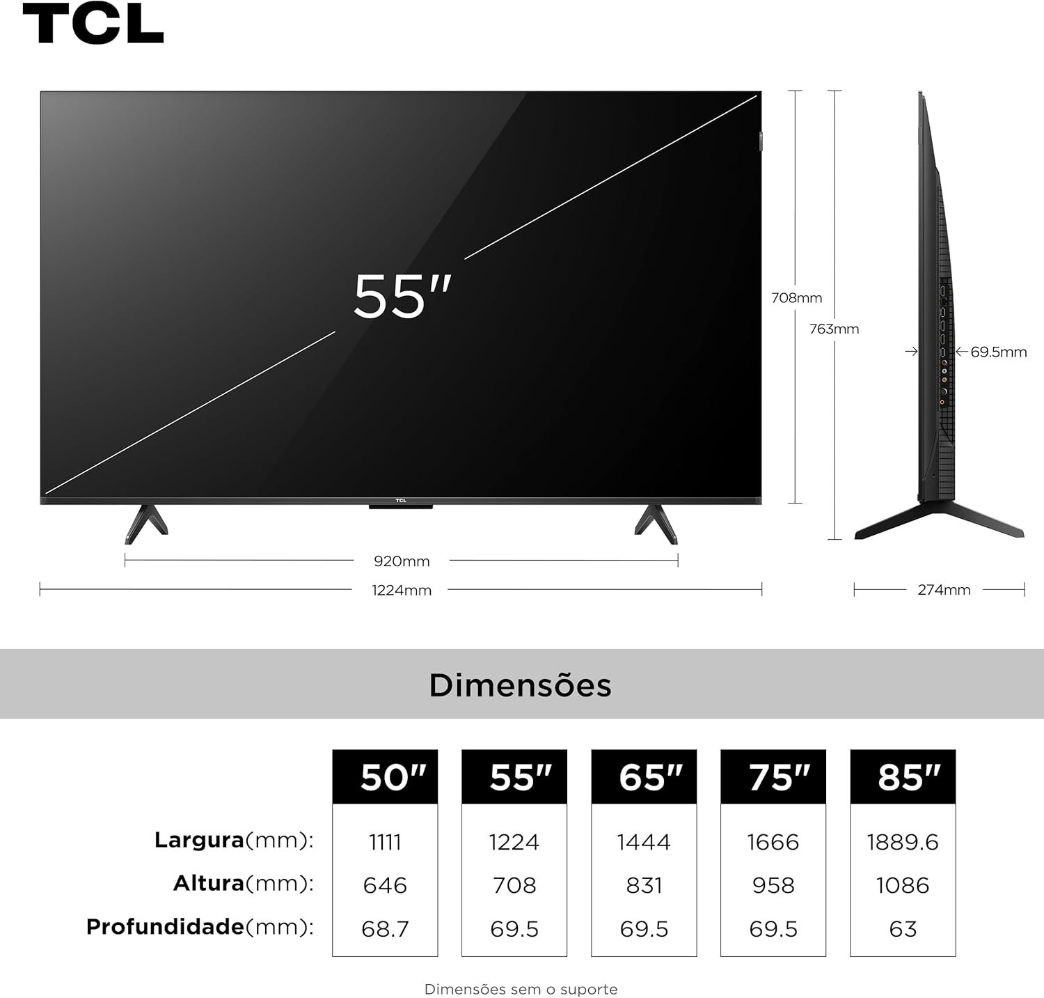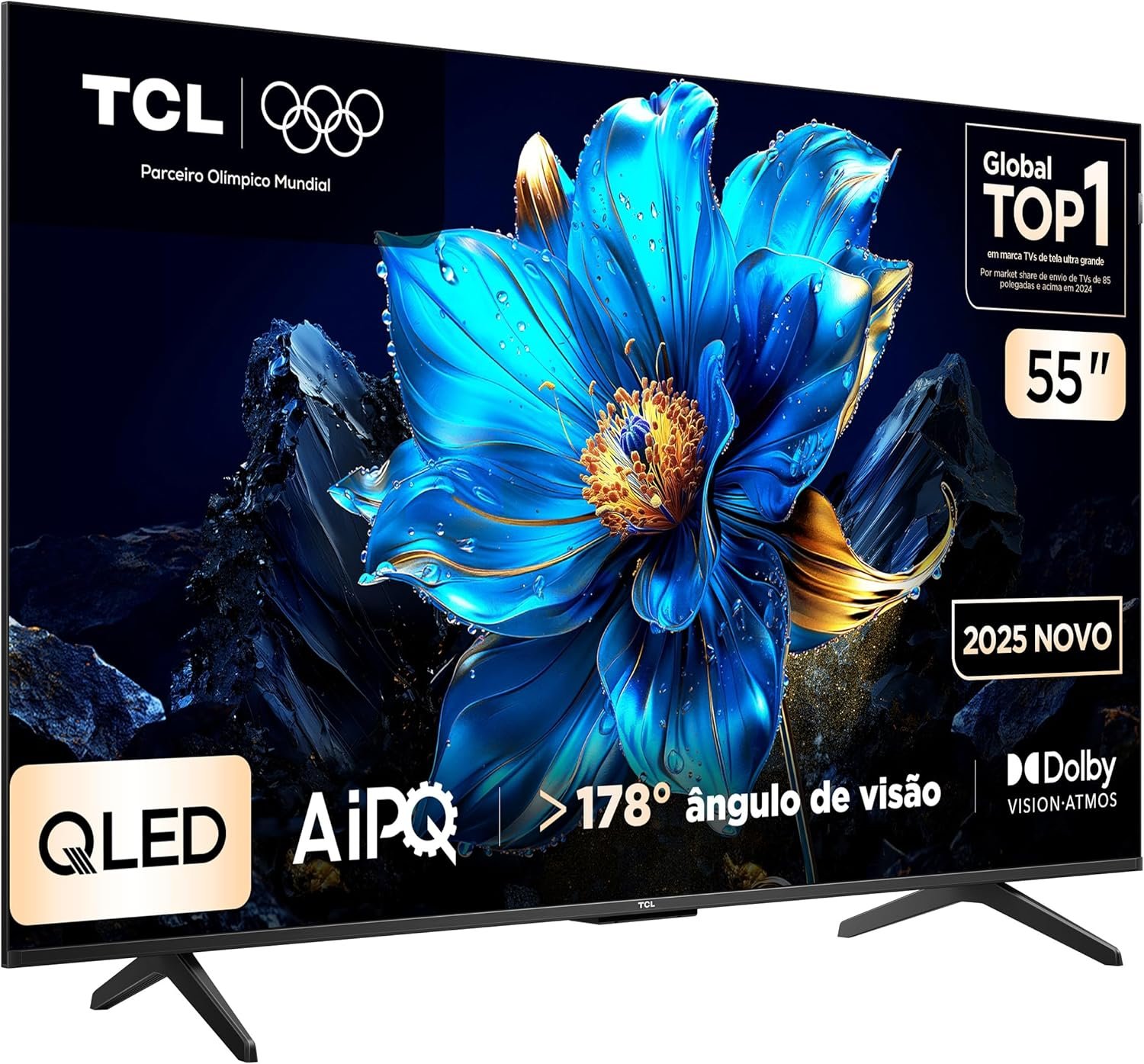 TCL QLED SMART 4K 55“ P7K GOOGLE TV com Wi-Fi Dual Band e Bluetooth integrados, Google Assistente, Dolby Vision, Dolby Atmos, HDMI 2.1, HDR10+, comando por voz, Googlecast integrado e design sem bordas.