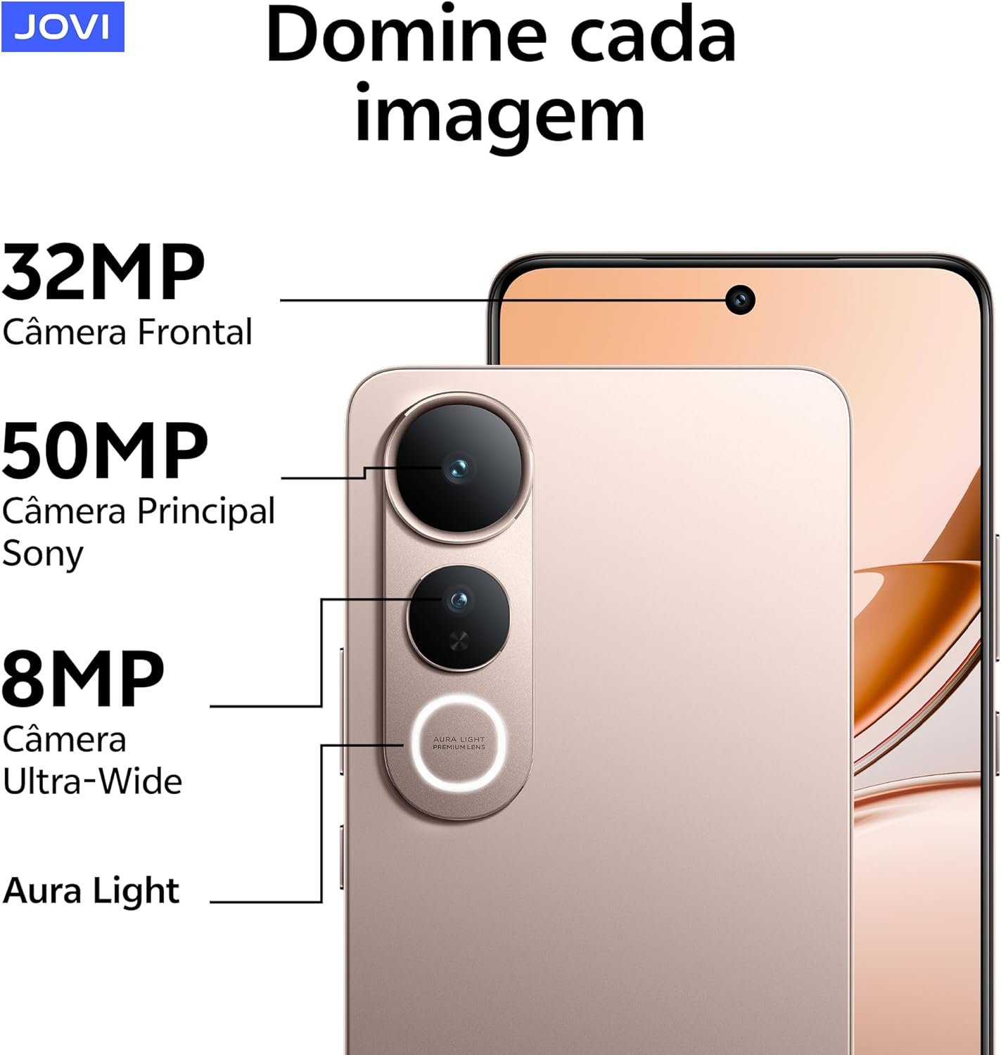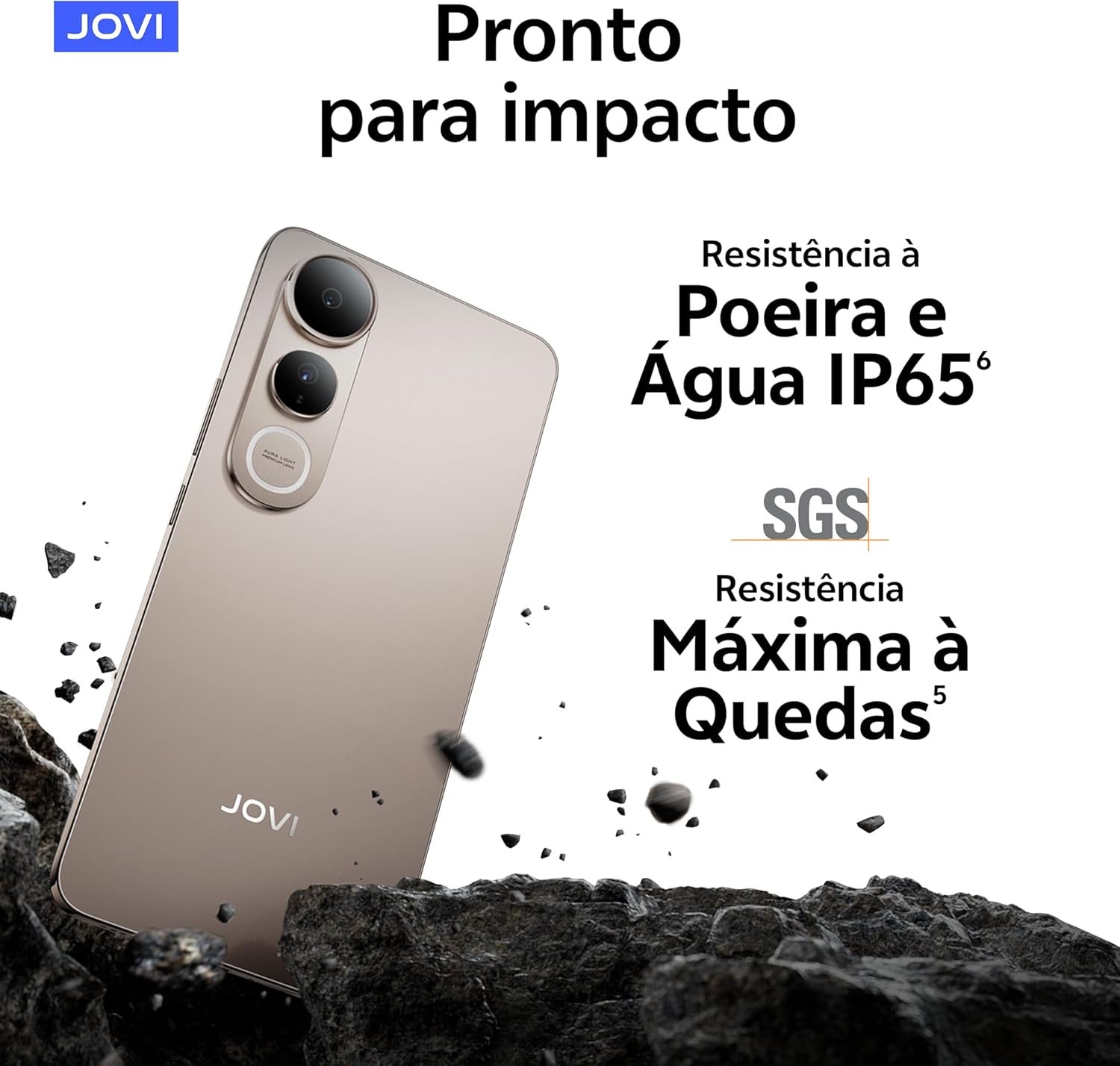 O Smartphone V50 Lite da Jovi é um modelo intermediário que combina alto desempenho, bateria duradoura e design sofisticado. Produzido pela JOVI Smartphones, líder na Ásia, possui bateria BlueVolt de 6.500 mAh com carregamento rápido de 90W, que oferece até 27h de vídeos ou 73h de música, além de carregamento reverso para outros dispositivos. Seu corpo metálico ultrafino de 7,79 mm tem vidro reforçado e certificação IP65 contra poeira e jatos d’água.