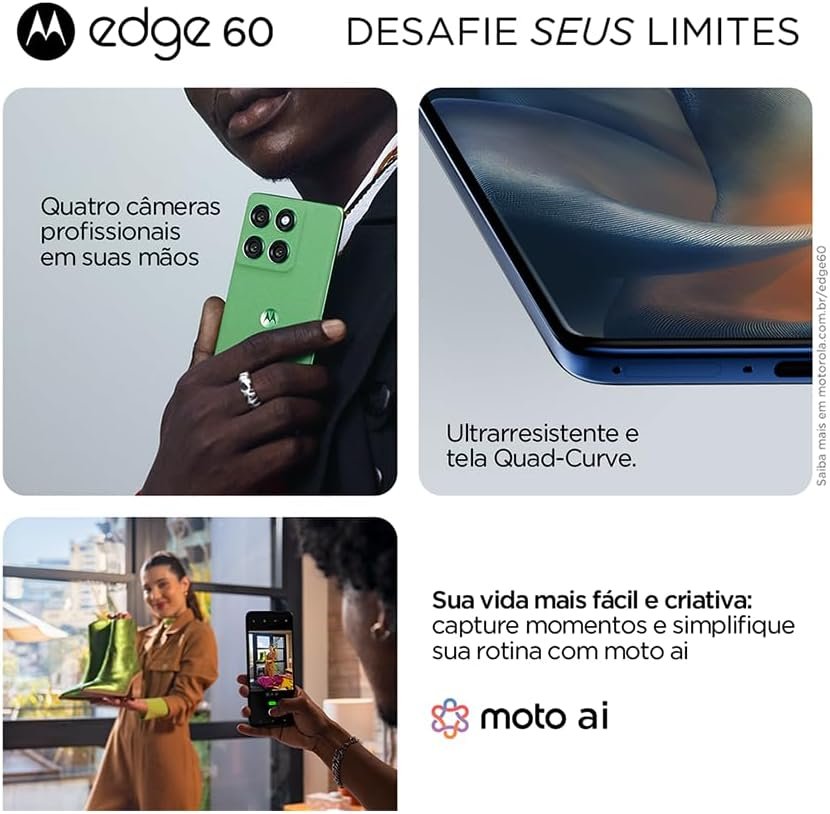 Smartphone Motorola Edge 60 5G – 512GB 24GB (12GB RAM+12GB Ram Boost) Tela Quad-Curve moto AI 50MP Sony Camera ultrarresistencia militar IP68 + IP69 – Verde