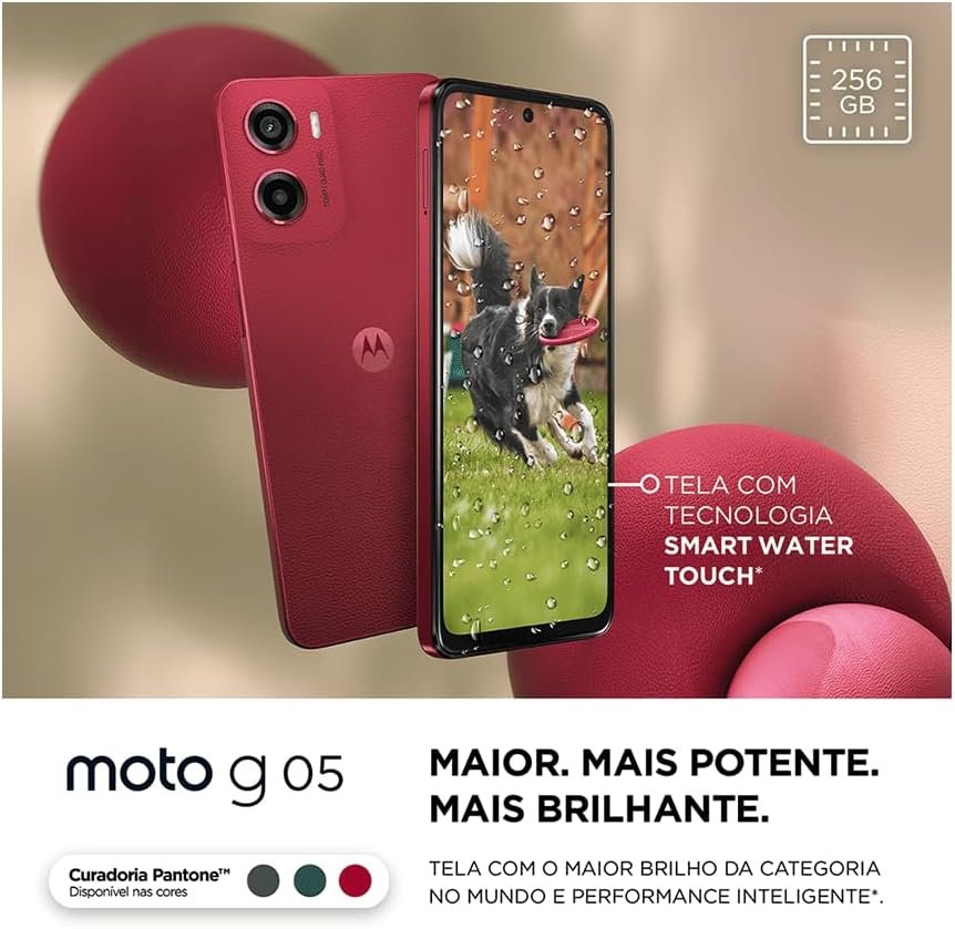 Smartphone Motorola Moto g05-256GB 12GB (4GB RAM + 8GB Ram Boost) e Camera 50MP com AI Bateria de 5200 mAh Tela 6.7″ com Superbrilho – Vermelho