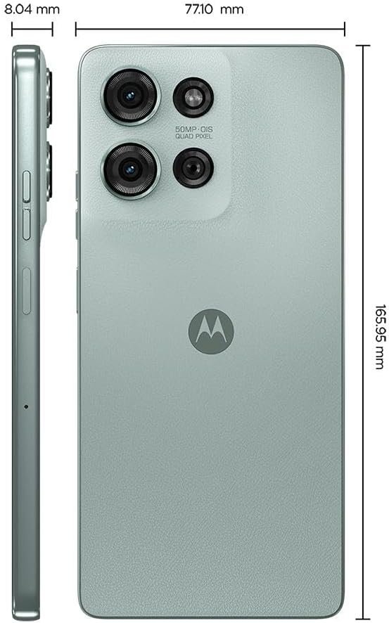 O aparelho traz Android 14 com cinco anos de atualizações, tela Full HD+ de 6,8” com superbrilho e tecnologia Smart Water Touch, que permite uso com a tela molhada. Equipado com processador Qualcomm Snapdragon 6 Gen 3, oferece até 16 GB de RAM com Boost Inteligente e bateria de 5000 mAh. O som é Dolby Atmos, e o armazenamento interno é de 256 GB.