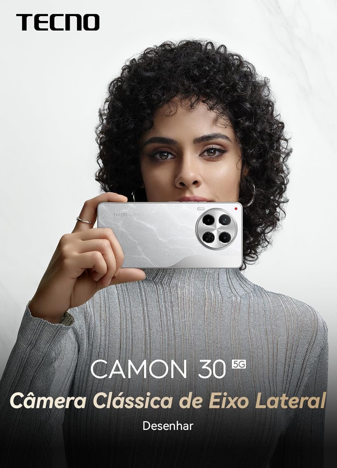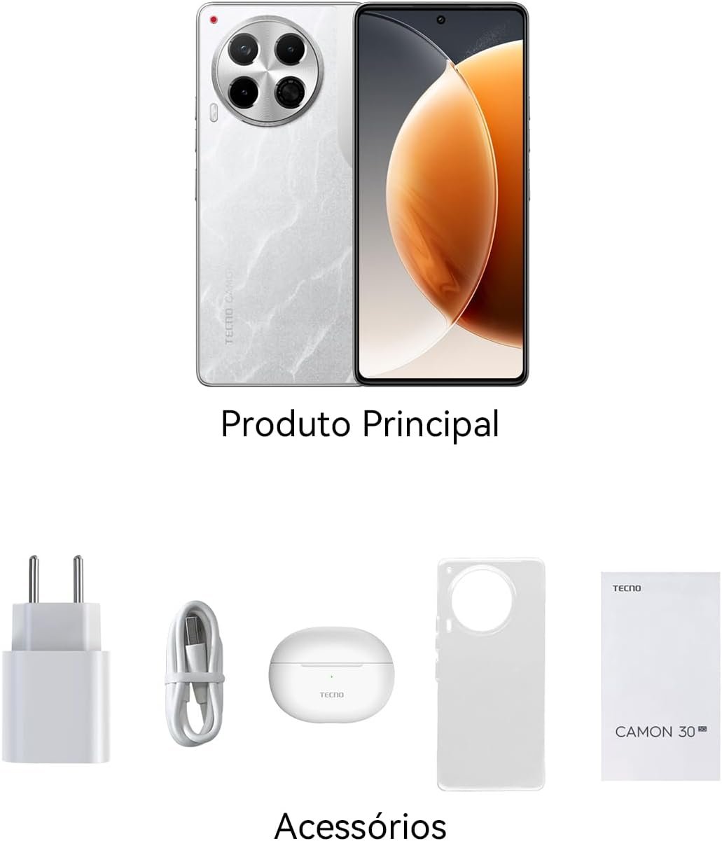 Smartphone Tecno Camon 30 5G 256GB Tela AMOLED 6.78″ Câmera Tripla 50MP Branco
