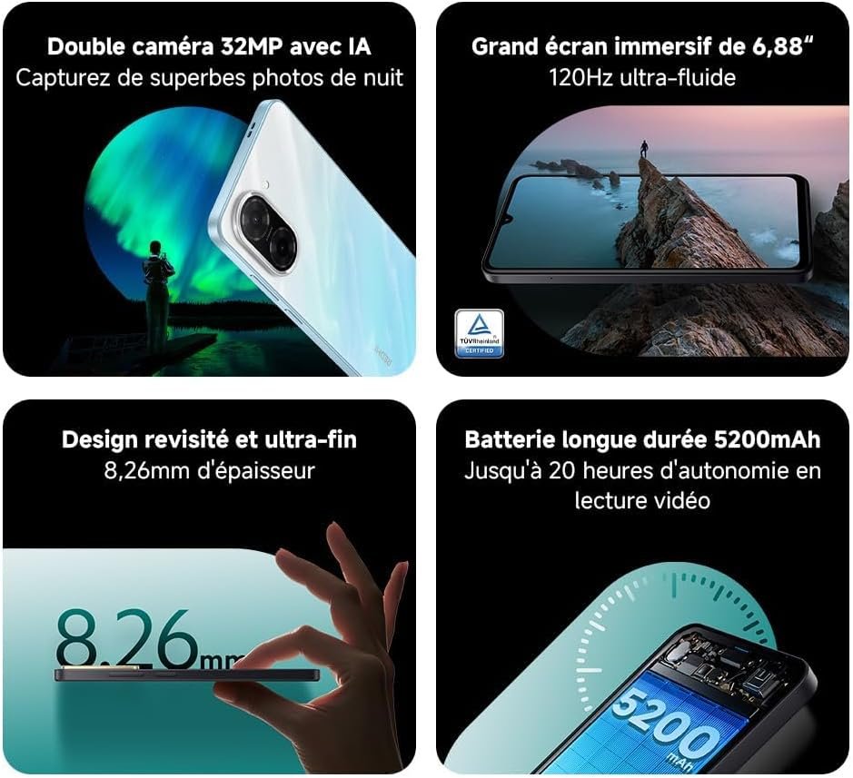 Design moderno com acabamento premium na cor Azul Ocean Blue e corpo fino e elegante. Suporte para dois chips (Dual SIM), oferecendo maior flexibilidade na gestão das linhas telefônicas. O sistema de imagem com IA proporciona fotos mais nítidas, incluindo marca d’água exclusiva e excelente desempenho em cenas noturnas.