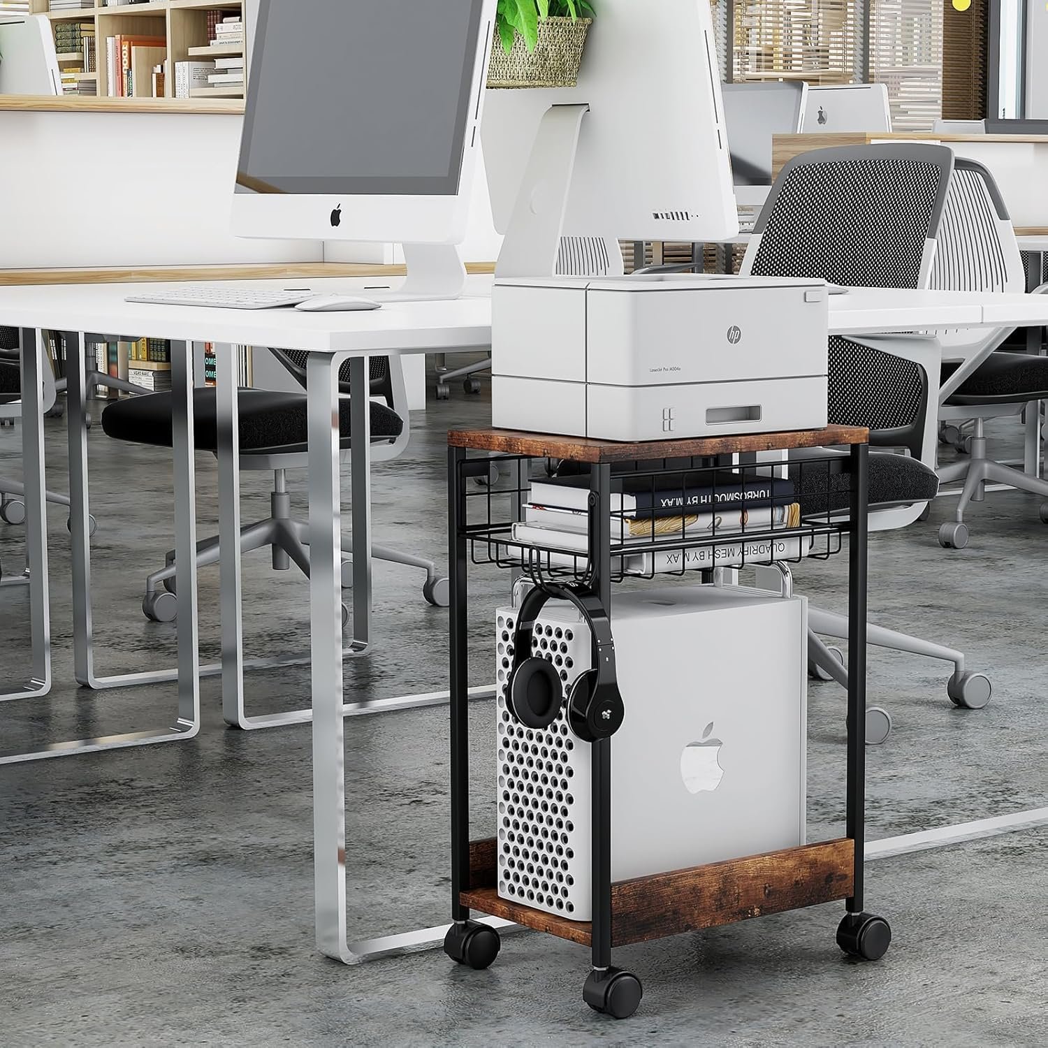 - Suporte de torre de computador com área de trabalho espaçosa que acomoda impressoras, máquinas de fax, impressoras 3D, scanners e outros materiais de escritório.