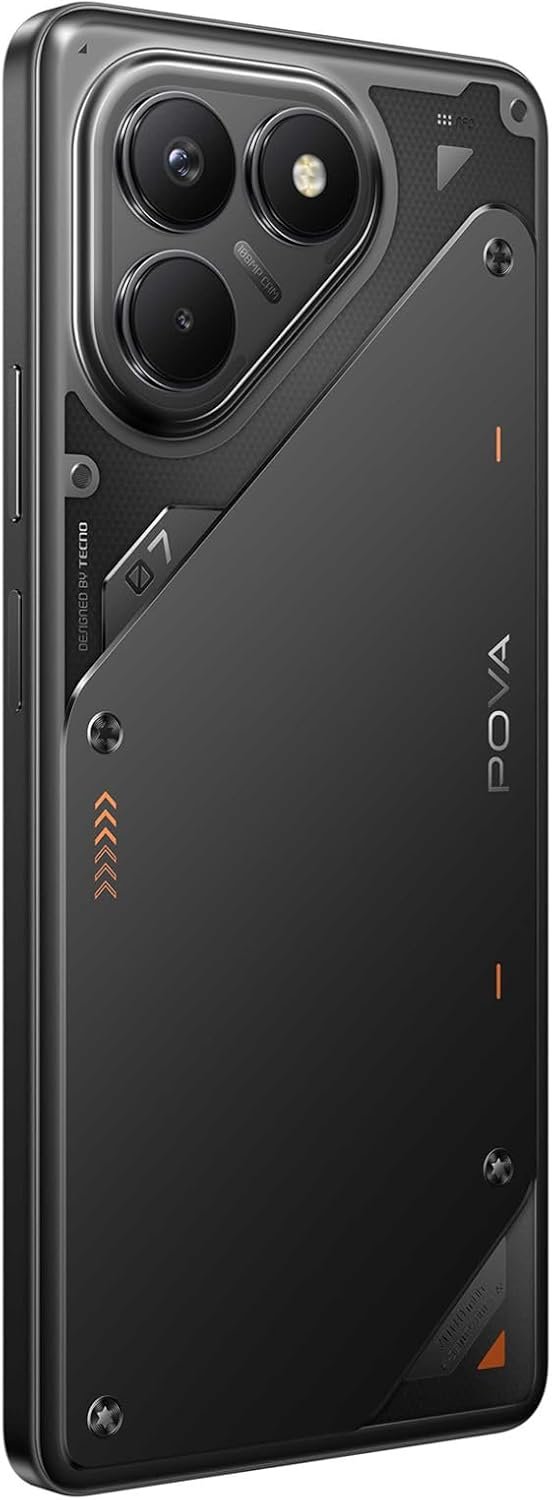 TECNO POVA 7 possui tela AMOLED de 6,78” FHD+ com taxa de atualização de 120 Hz. Equipado com processador Helio G100 octa-core, 8 GB de RAM e 256 GB de armazenamento interno expansível via microSD. Câmera principal de 108 MP. Bateria de 7000 mAh com carregamento rápido de 45 W. Suporta multitarefas e jogos pesados. Conta com resistência a respingos e suporte a NFC.